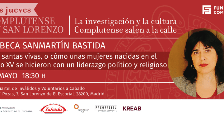 La Investigación Complutense sale a la calle – Jueves Complutense Publicado el 21 de abril de 202621 de abril de 2026 por admin Inicio / Noticias / Noticias / Conferencia / La Investigación Complutense sale a la calle – Jueves Complutense 21 de mayo de 2026 Cuartel de Inválidos y Voluntarios a Caballo Más información Rebeca Sanmartín participa en los Jueves Complutense con un seminario titulado "Las santas vivas, o cómo unas mujeres nacidas en el siglo XV se hicieron con un liderazgo político y religioso". Compártelo: Compartir en X (Se abre en una ventana nueva) X Comparte en Facebook (Se abre en una ventana nueva) Facebook Publicado en Conferencia, Noticias.